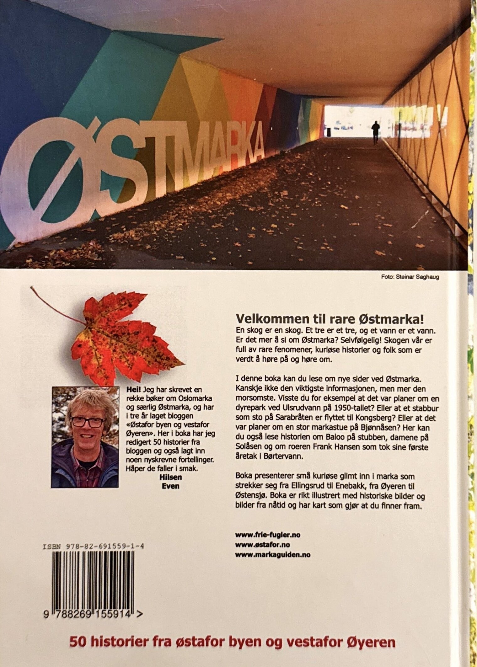 Even Saugstad (1960) er forfatter, journalist, frilansformidler, typograf og forlegger. Han driver sitt eget forlag, Frie Fuglers Forlag, og skriver i hovedsak om lokalhistorie og friluftsliv, med fokus på Østmarka. Han kombinerer lokalhistorie, naturformidling, fotografier og levende anekdoter— gjennom bøker, foredrag og turer. Saugstad og samboer Irene drev i 11 sesonger Sandbakken Markastue i Østmarka.