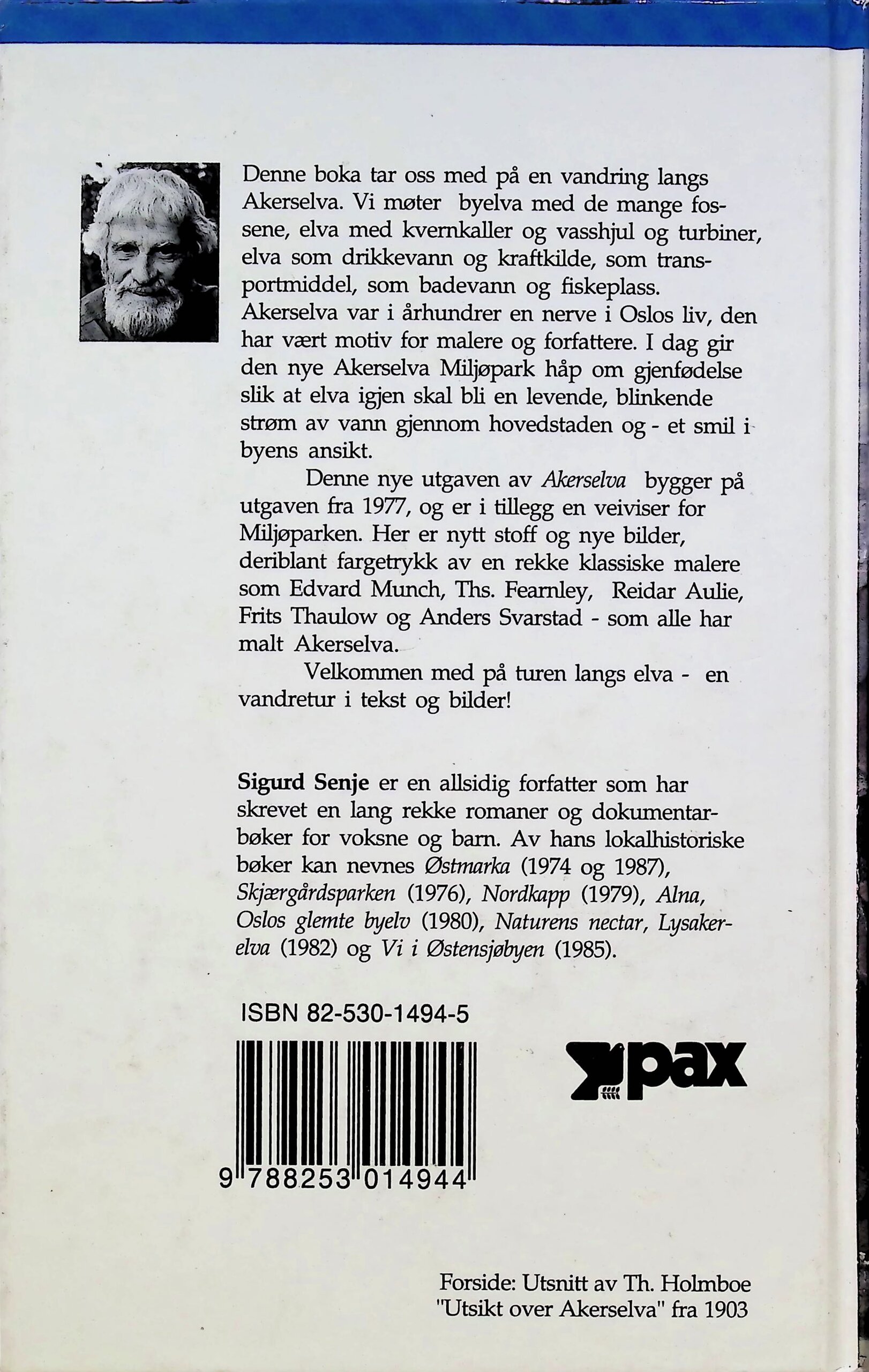 Sigurd Senje (1919–1993) var en allsidig forfatter, lektor og lokalhistoriker, særlig kjent for bøker innen natur, lokalhistorie og andre verdenskrig. Senje tok magistergrad i filologi, og arbeidet som lektor fram til 1972. Etter dette var han forfatter på heltid. Hadde sin barndom og oppvekst i Oslo, med særlig tilknytning til Oppsal og Østensjø. Dette preget hans skrivearbeid. Senje skrev en rekke bøker om Østmarka og Akerselva.
