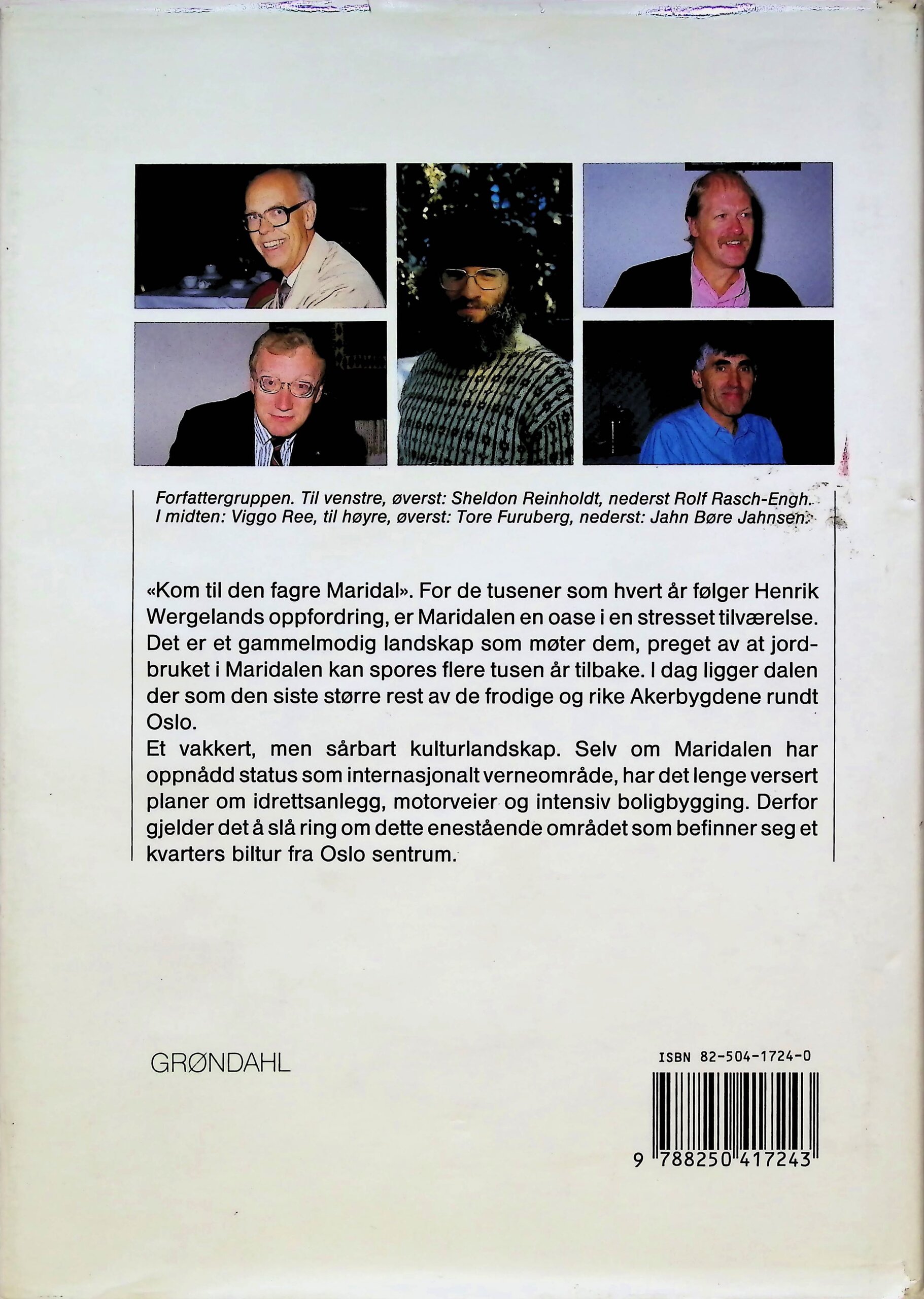 Tore Furuberg (1946-1990) arbeidet for Myrens Verksted og Postgirokontoret. Han var aktiv i Maridalen Vel, Maridalens Venner, Maridalsspillet og Maridalens ungdomsforening. Furuberg var kjentmann i Maridalen og sosialt engasjert. Furuberg var lokalhistoriker, skribent og forfatter. Jahn Børe Jahnsen (1943) er utdannet cand.philol. Han arbeidet som lektor og seniorkonservator. Jahnsen er reiseleder, turleder og foredragsholder. Han har vært lokalpolitiker og er aktiv lokalhistoriker. Rolf Rasch-Engh (1942) er militær, filiolog og historiker. Han har arbeidet for Norsk Folkemuseum, Hærmuseet, Buskerud Fylkeskommune og Bærum Kommune. Han er skribent, redaktør og forfatter. Han har skrevet et stort antall artikler, bøker og skuespill. Viggo Ree (1950) er billedkunstner, naturverner og sakprosaforfatter. Sheldon Reinholdt (1927-2001) var rektor ved Karlsrud skole. Han var også speiderleder, lokalhistoriker og forfatter.